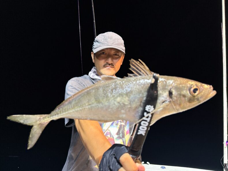 集魚灯を点けボトムに反応が出始めるとバチコンからのスタートでポツポツと🎣🐟