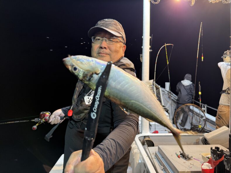 しばらくして風もおさまり船も安定するとサバの猛攻もありましたがバチコンはポツポツと平均には当たらずパターンにハマる方は連発もあり釣られてました🎣🐟