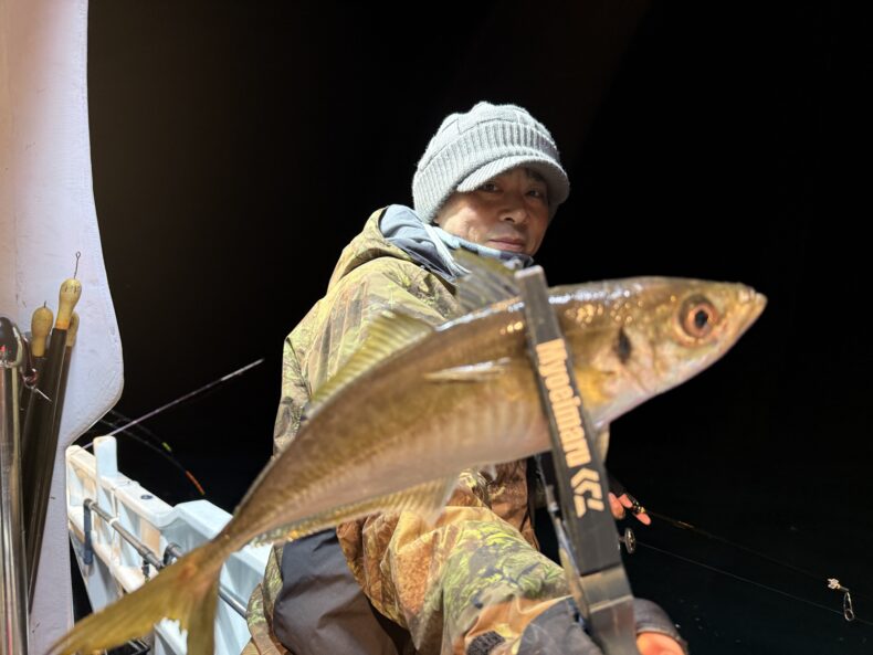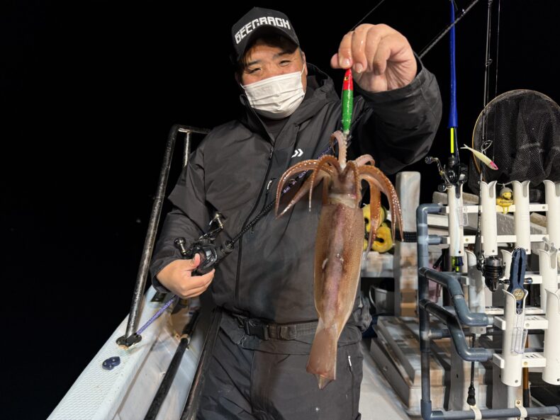 バチコンアジング本日はジークラックフィールドテスター藤本くん、フィッシング遊鈴鹿店から小林くん参戦で乗り合いの皆様とバチコン&イカメタル便で出船致しました❗️