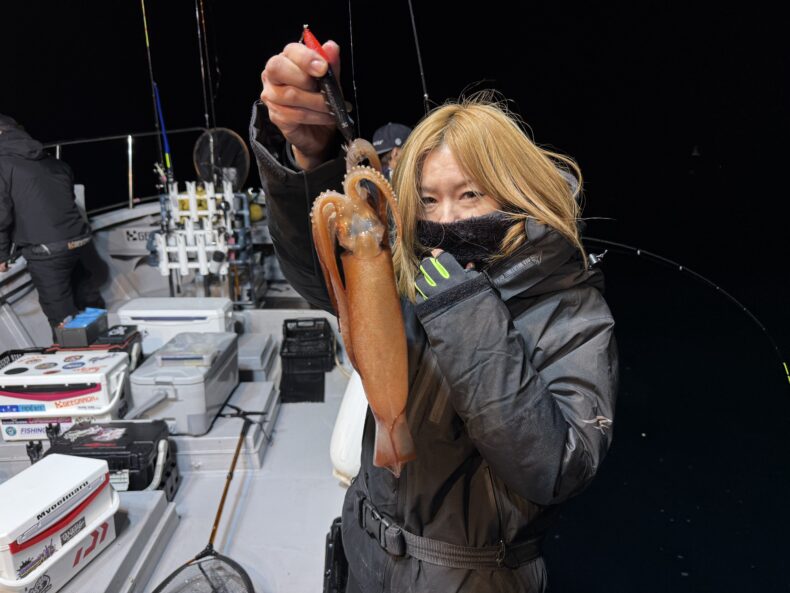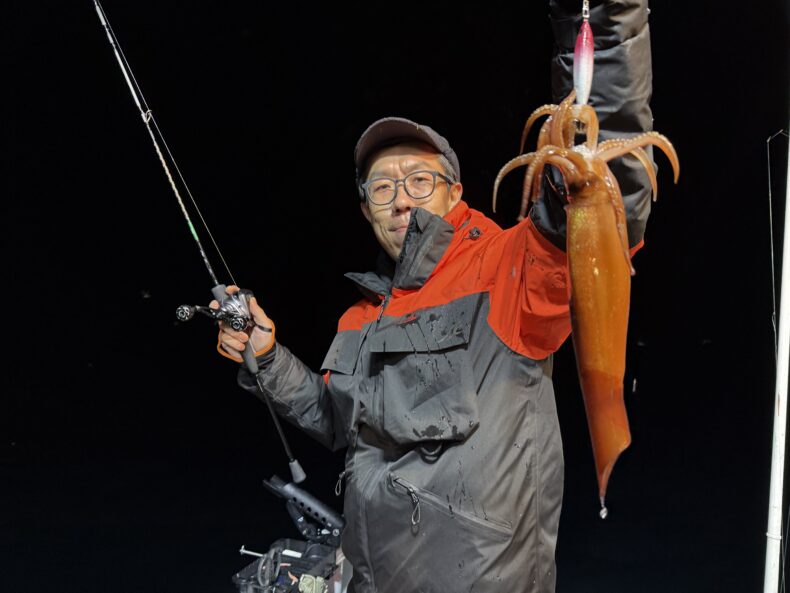 集魚灯を点けしばらくして反応がパラパラと出始めるとポツリ…ポツポツと当たり始め✨