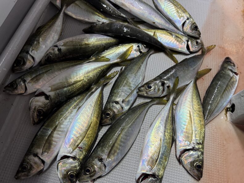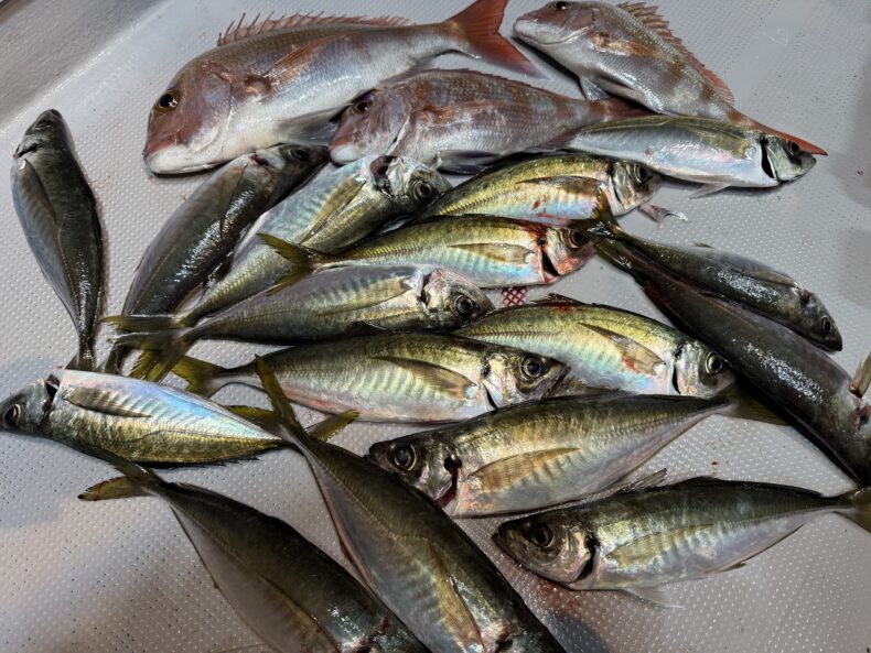 中盤から潮が徐々に緩み始めると皆さんポツリ…ポツポツと竿が曲がり始めパターンにハマる方は連発もあり釣られてました😁✨