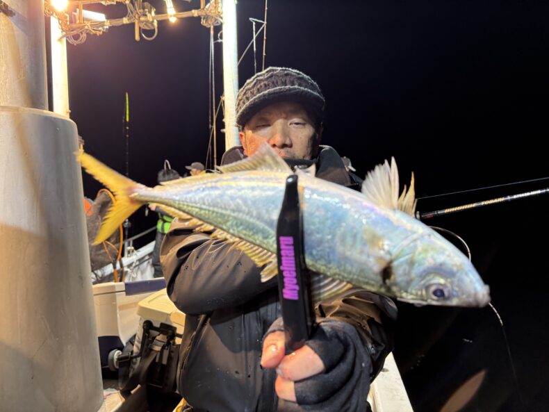 集魚灯を点けベイトの反応が出始めるとイカメタルからのスタートでダブルなどもありバタバタと✨