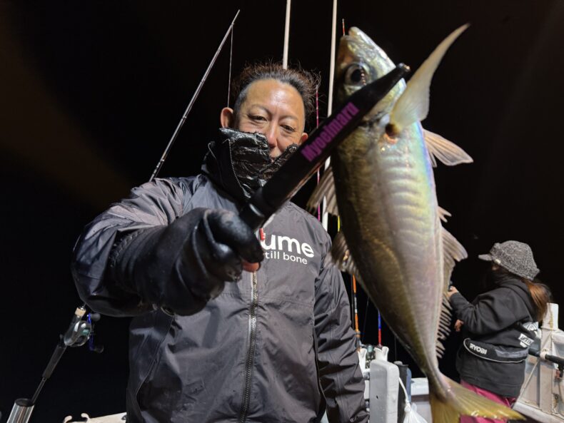 バチコンアジング本日はフィッシングMAX泉大津店から藤林さん、釣りガールなっちゃん参戦で乗り合いの皆様とバチコン&イカメタル便で出船致しました❗️