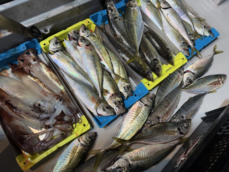 🦑&🐟と最後まで止まらず誰かの竿が曲がっている状況で時間となり終了とさせて頂きました🙇♂️