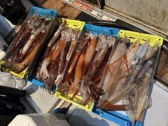 🦑1/23イカメタル釣果🦑 本日はジークラックテスター藤本くん参戦で乗り合いの皆様とイカメタル便で出船致しました❗️ ポイントに着くと潮がぶっ飛び… すぐアンカー上げ⚓・・・ 2026.01.25イカメタル