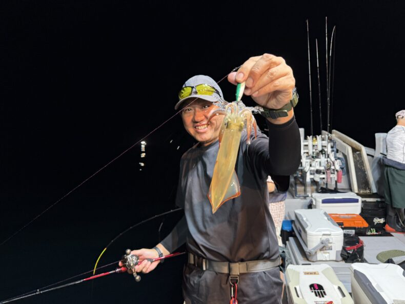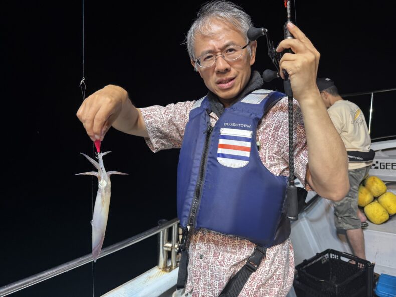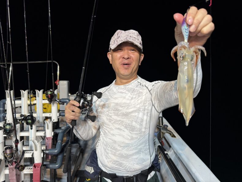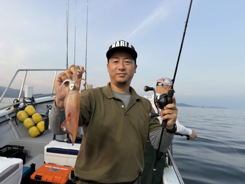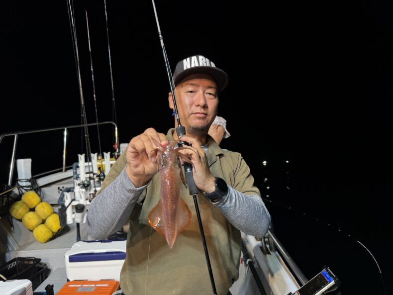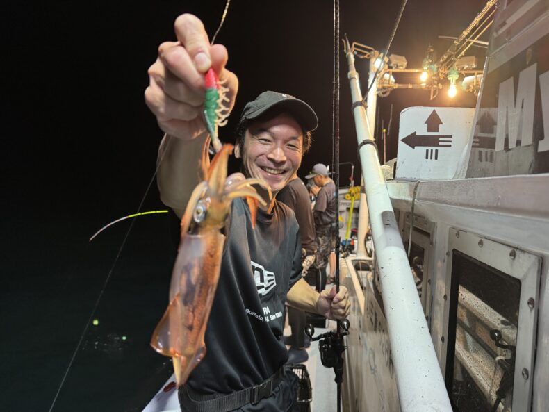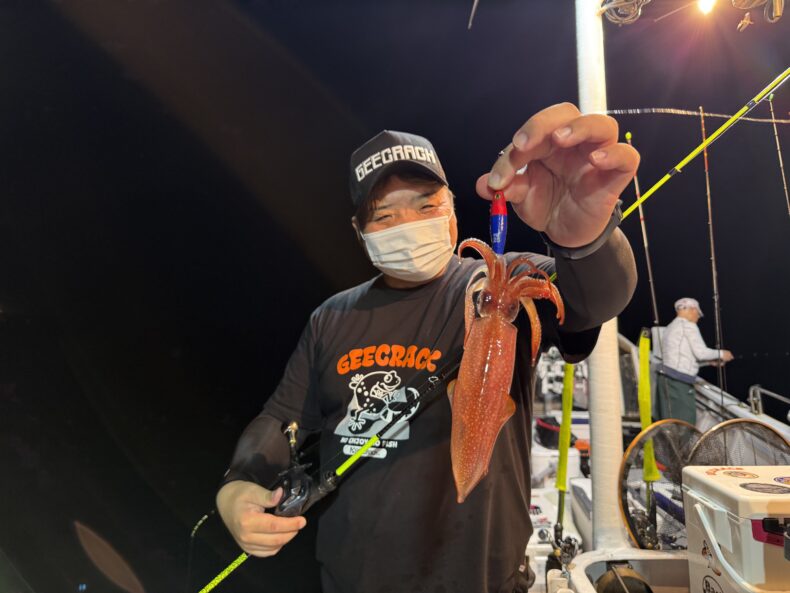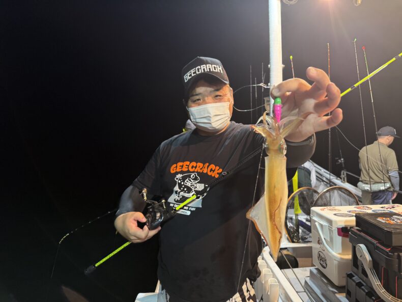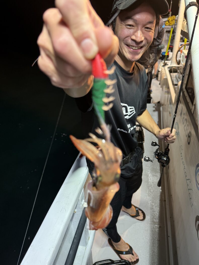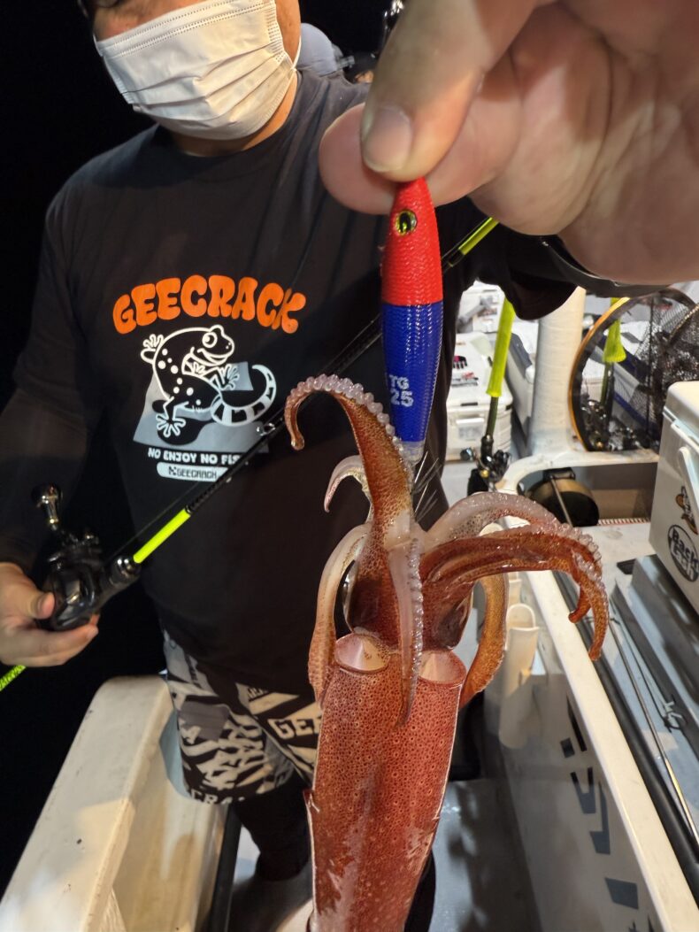 イカメタル本日はGEECRACKから廣瀬くん、森永くん、藤本くんマサヤートさん参戦で乗り合いの皆様とイカメタル便で出船致しました❗️