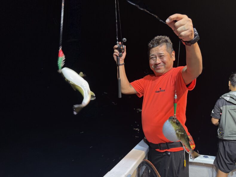 集魚灯を点けしばらくして反応が出始めるとポツリ…ポツポツと当たり始め✨