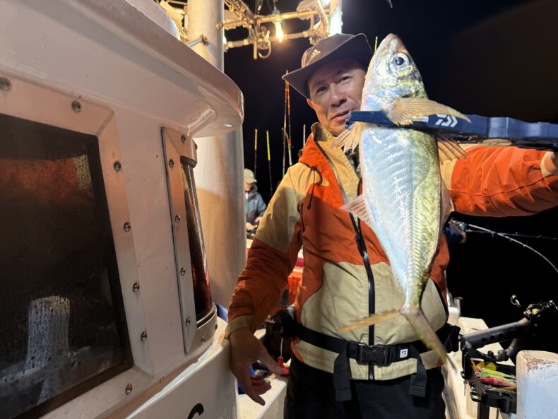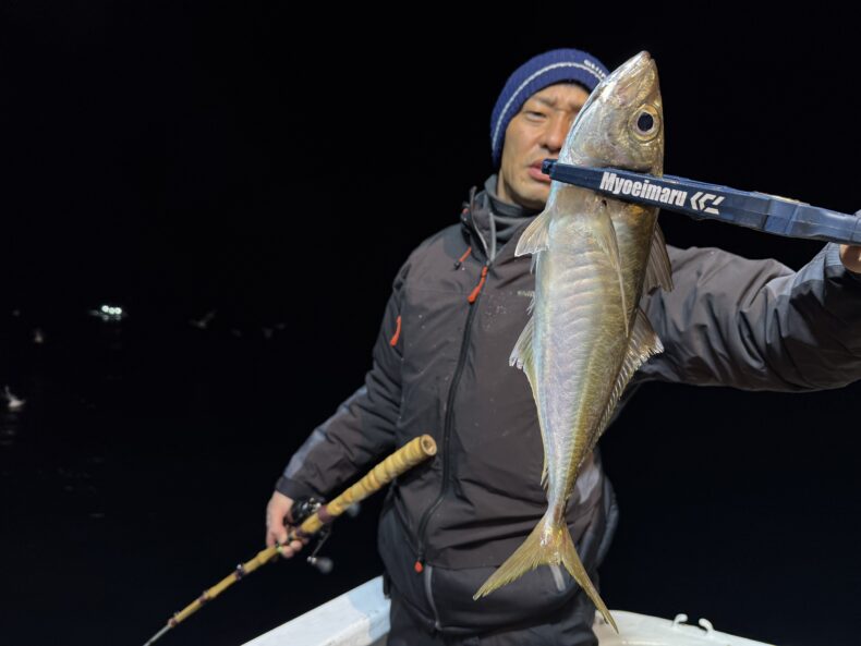 集魚灯を点け今日もしばらくしてもベイトの反応が悪くバチコンは中々当たらず…