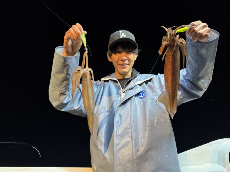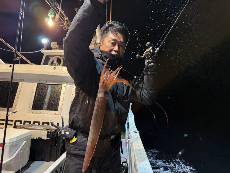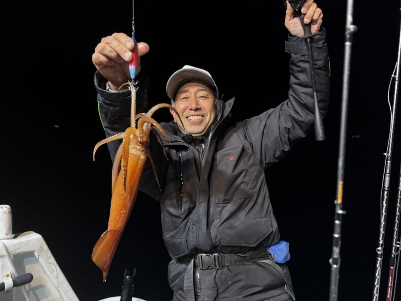 イカメタル本日はケイテック中川さん、伊藤さん タナジグフィールドモニターLB坂本くん参戦で乗り合いの皆様とバチコン&イカメタル便で出船致しました❗️