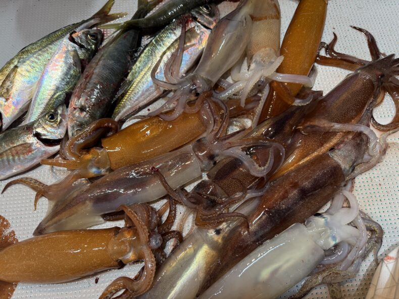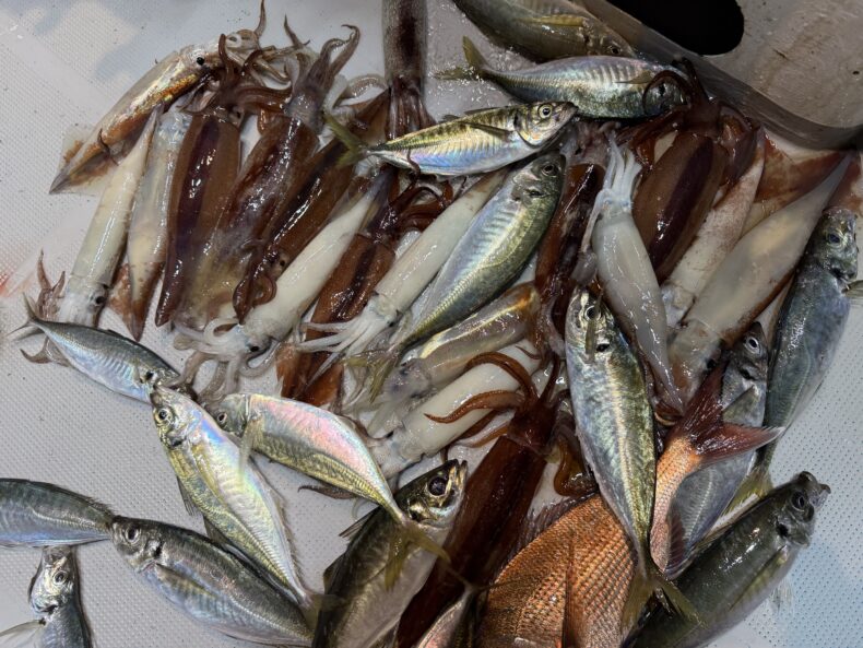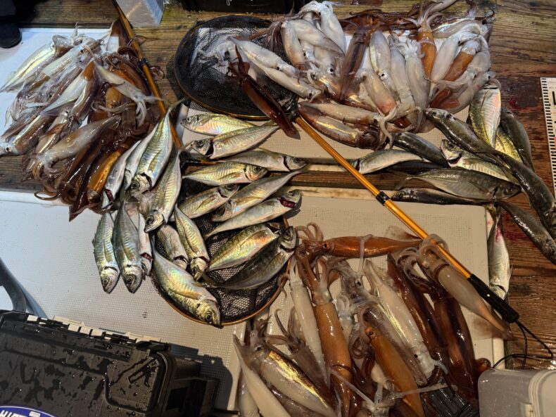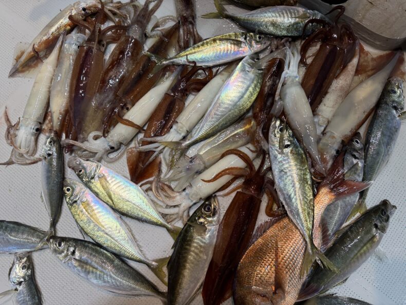 中盤〜後半は皆さんあちこちで竿が曲がり最後まで釣れ続けてくれました🎣🐟🦑