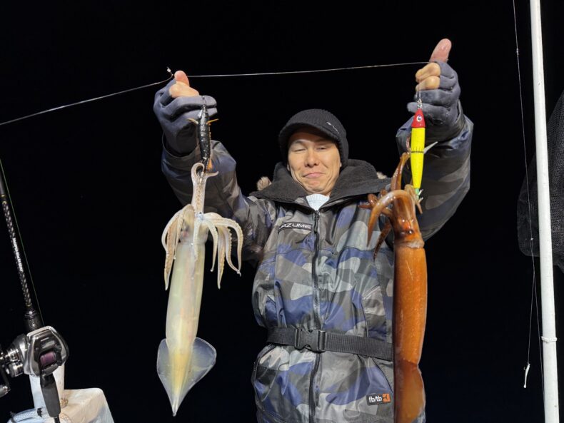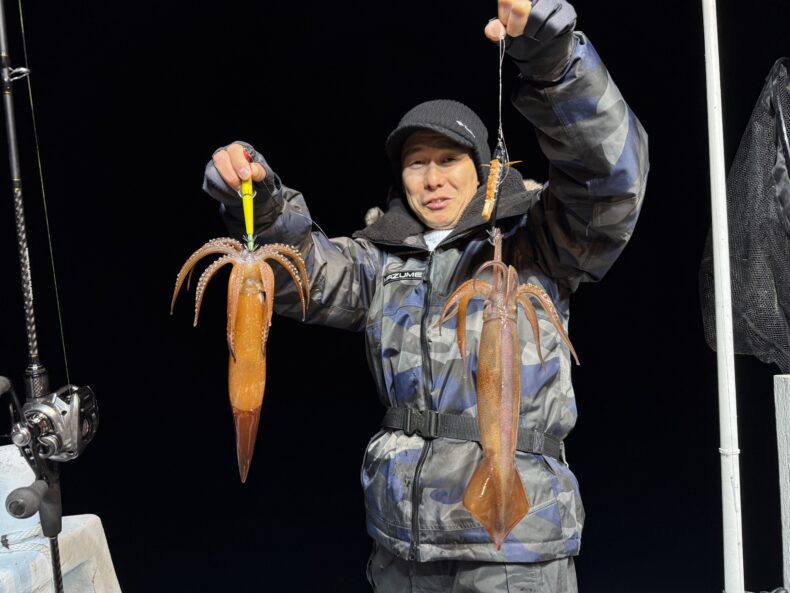 その後はスルメのダブル&連鎖などもありケンサキ混じりで良いペースで釣られてました👍