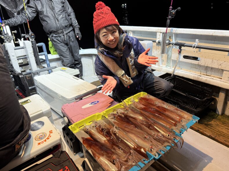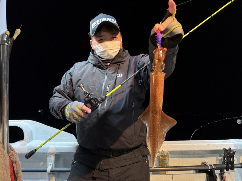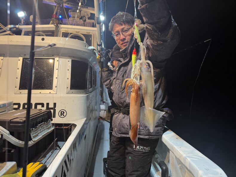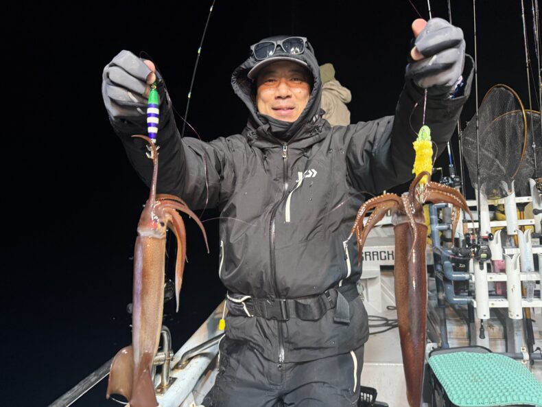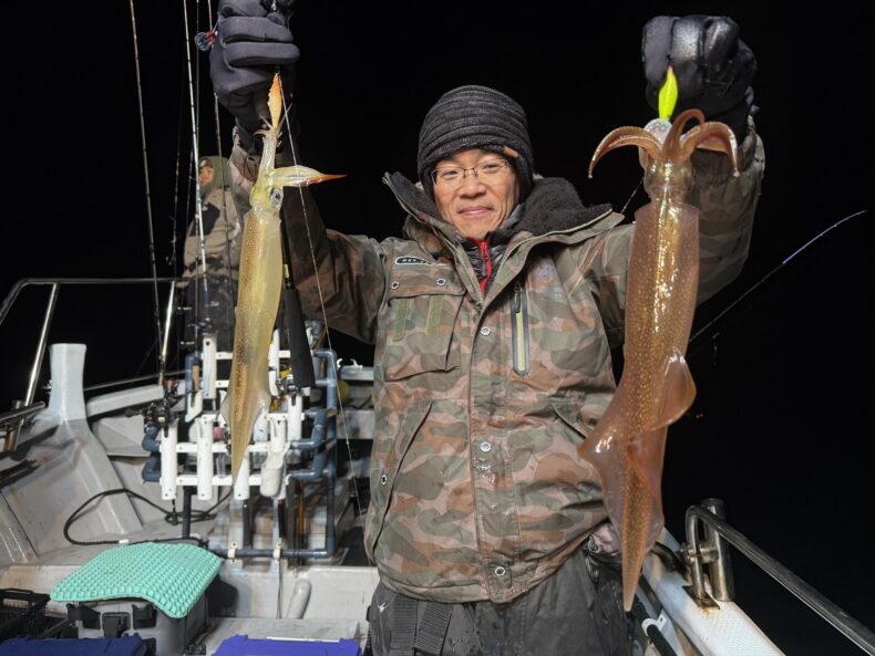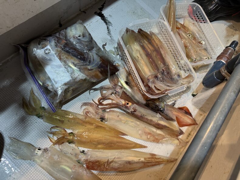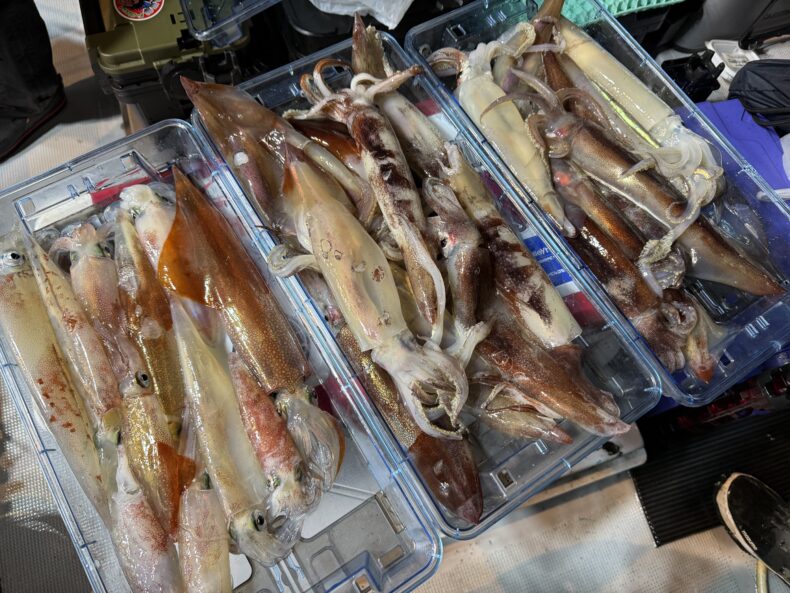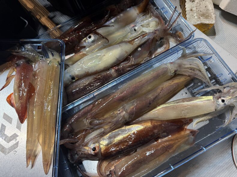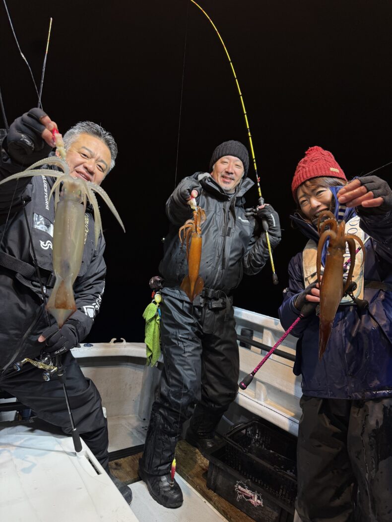 中盤からスルメイカの連鎖などもありボトムではヤリイカ&ケンサキの活性もあり皆さん竿を曲げポツポツと数を溜め釣られてました🎣🦑
