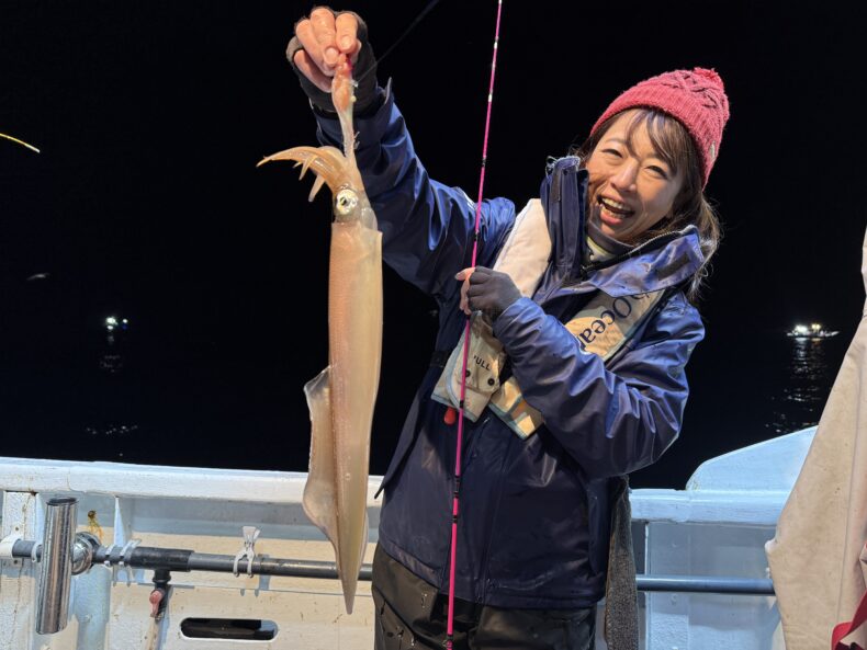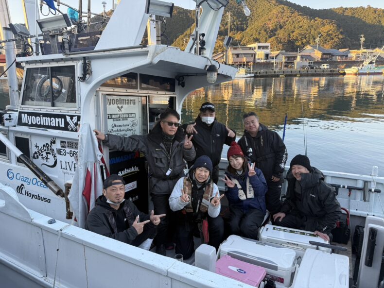 イカメタル本日はフィッシングポイントリポーターかおりちゃん、メジャークラフト橋本さん、フィッシング遊一宮店森くん、ジークラックフィールドテスター藤本くん参戦で乗り合いの皆様とイカメタル便で出船致しました❗️