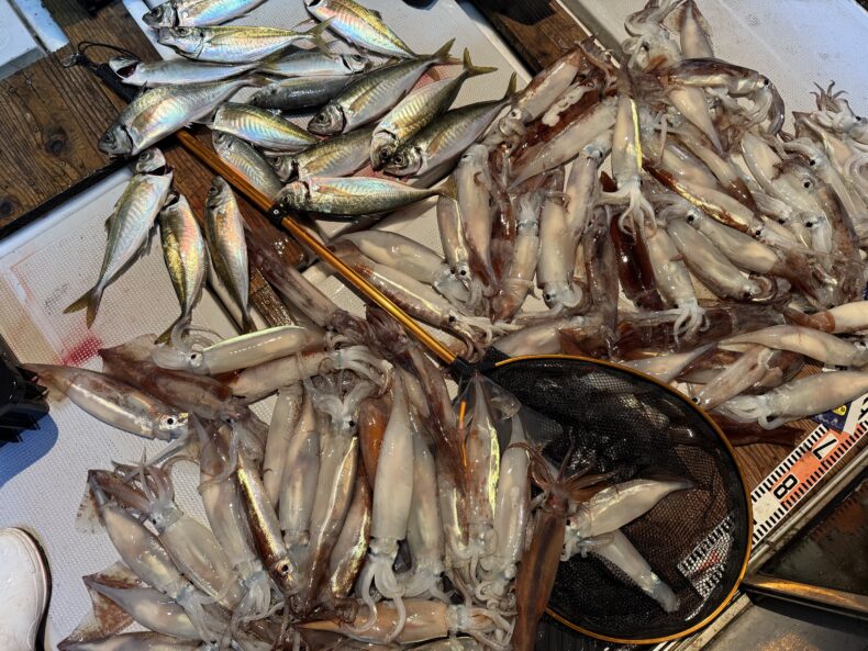 後半も皆さん棚の共有などして頂き最後まで誰かの竿が曲がっている状況で時間となり終了とさせて頂きました🎣🦑