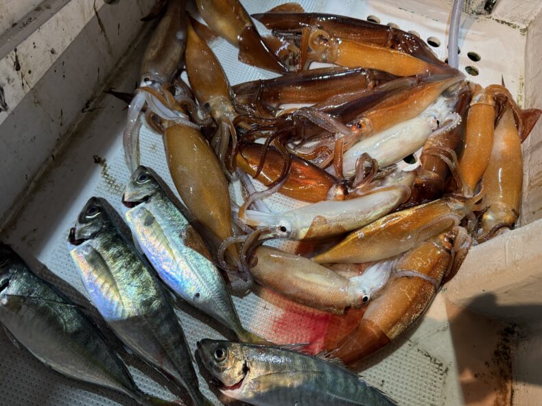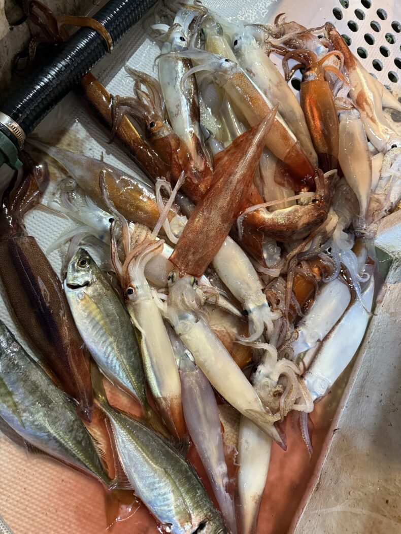 今日はスルメイカはボトムで当たらず棚も浅かったのでヤリイカは少なめでした😅