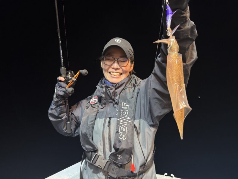 集魚灯を点け今日も明るい時間帯からバタバタとスルメイカが当たり始め😳✨