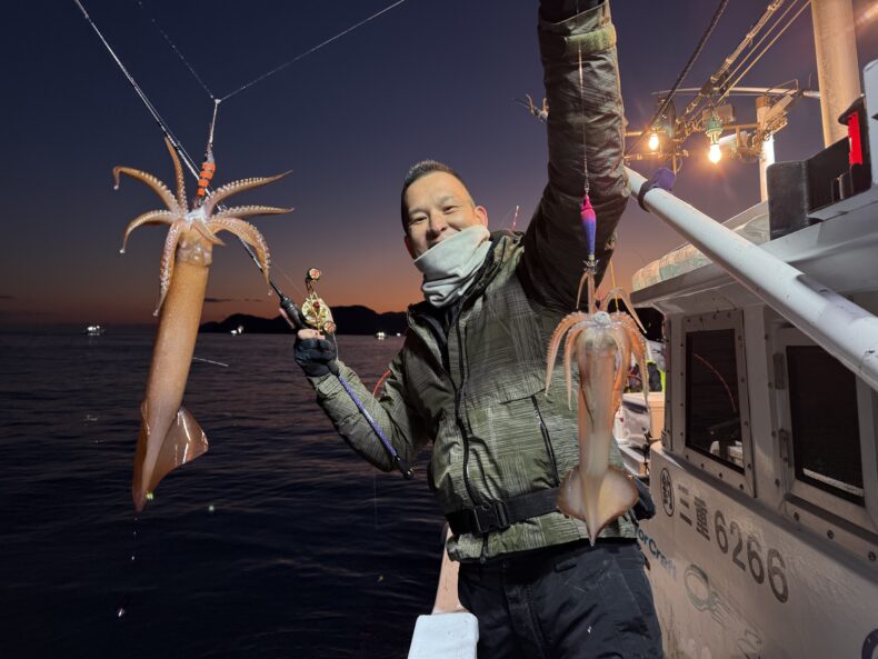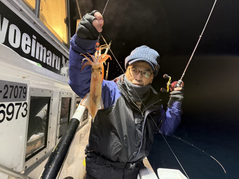 中盤ぐらいからケンサキ、ヤリイカ、スルメと釣られてました👍
