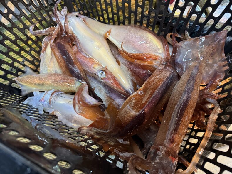 集魚灯が効き始めるとケンサキから当たり始めヤリイカ&スルメイカと皆さんポツポツ…ポツポツと誰かの竿が曲がっている状況で時間となり終了とさせて頂きました🙇♂️