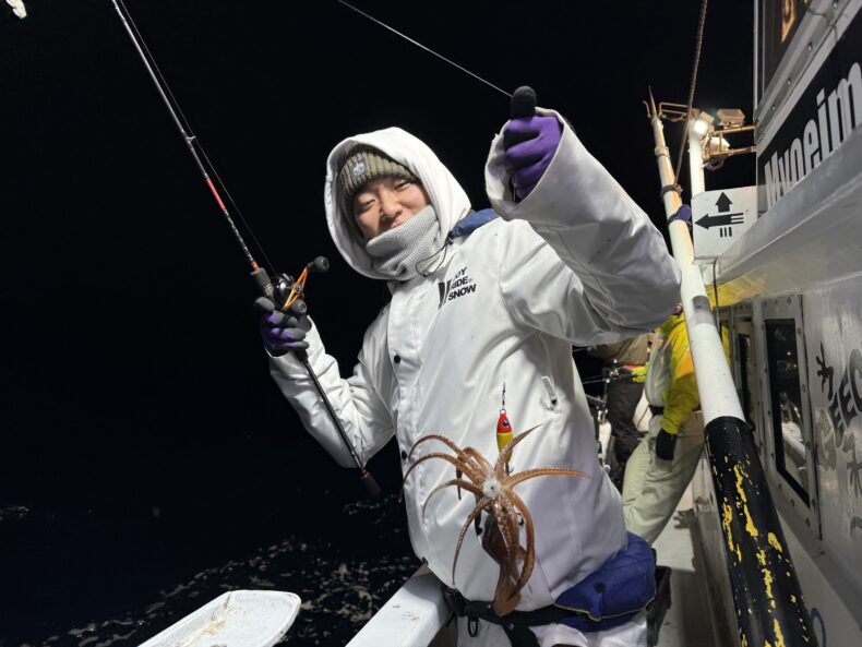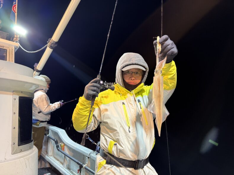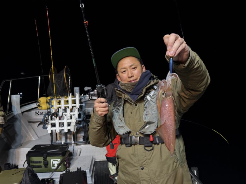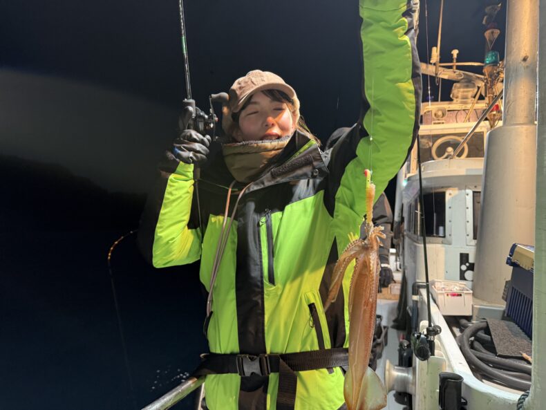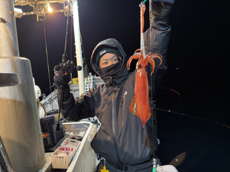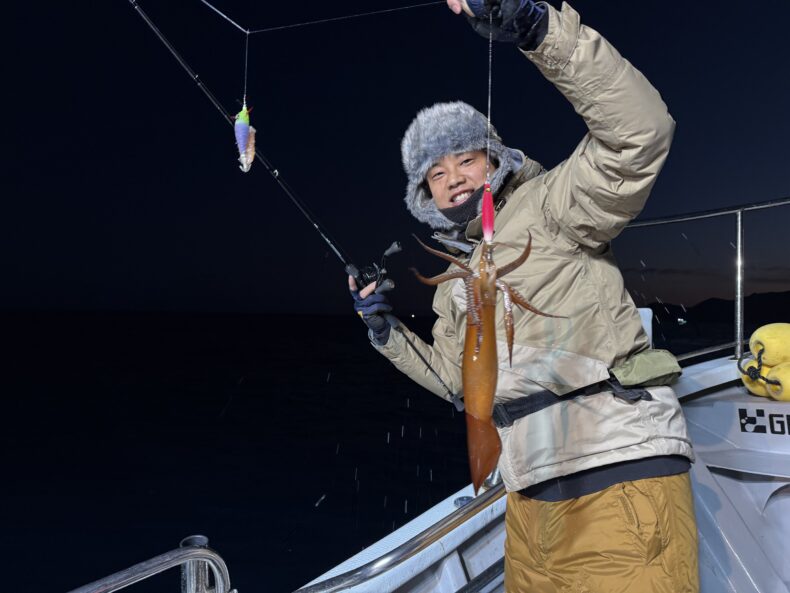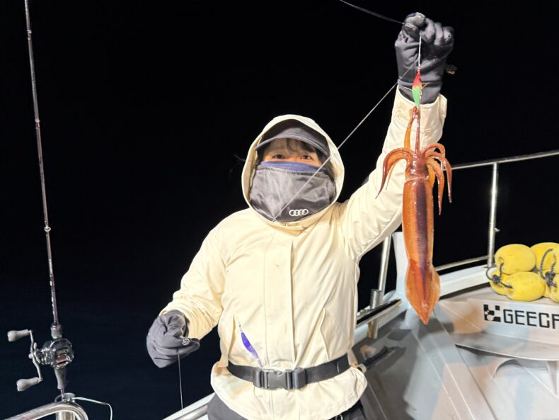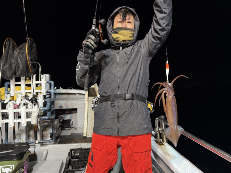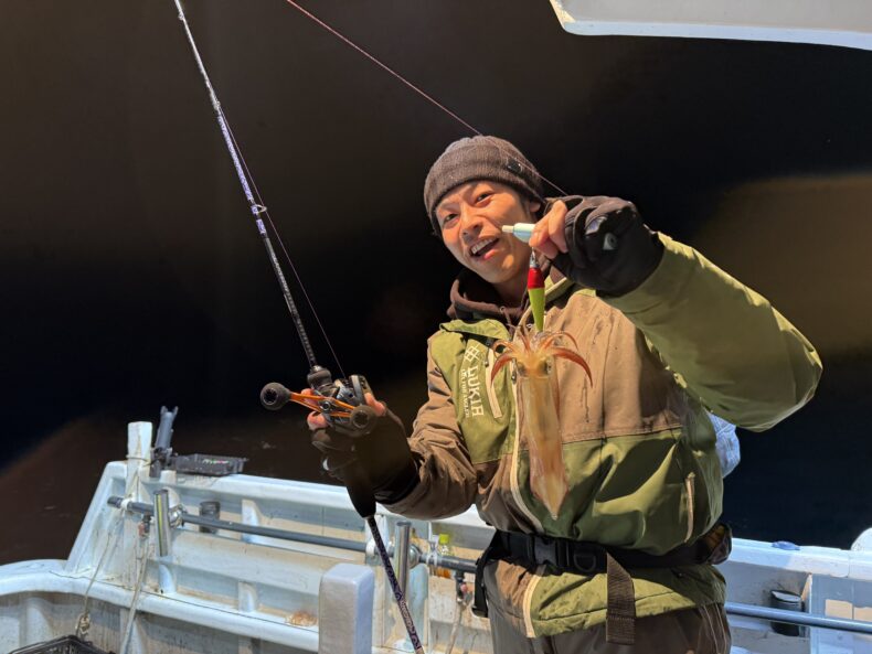 集魚灯が効き始めるとケンサキがポツポツと当たり始め✨