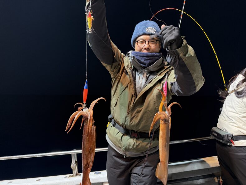 集魚灯を点けしばらくするとスルメイカがバタバタと連鎖あり当たり始め😳✨