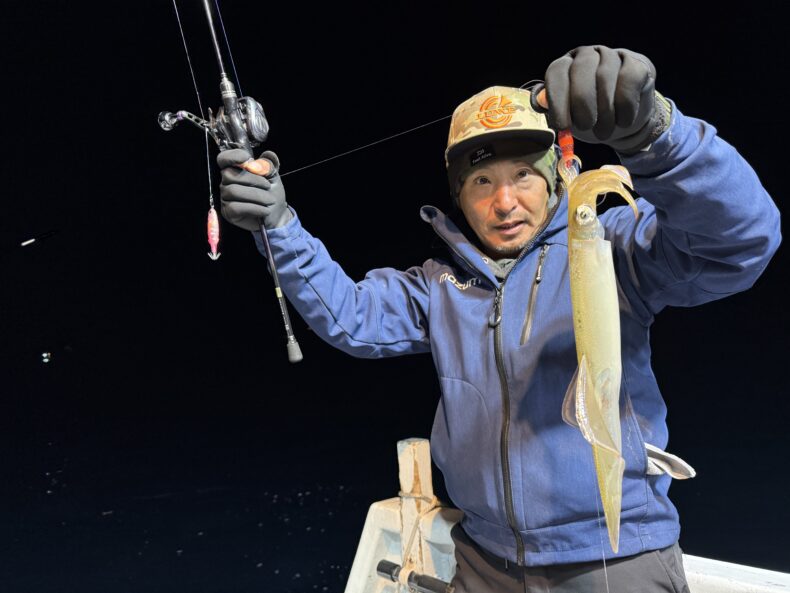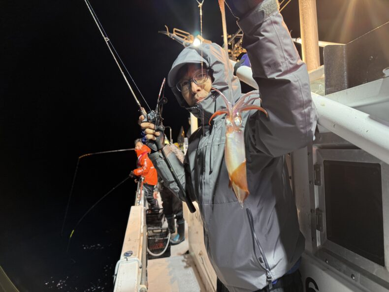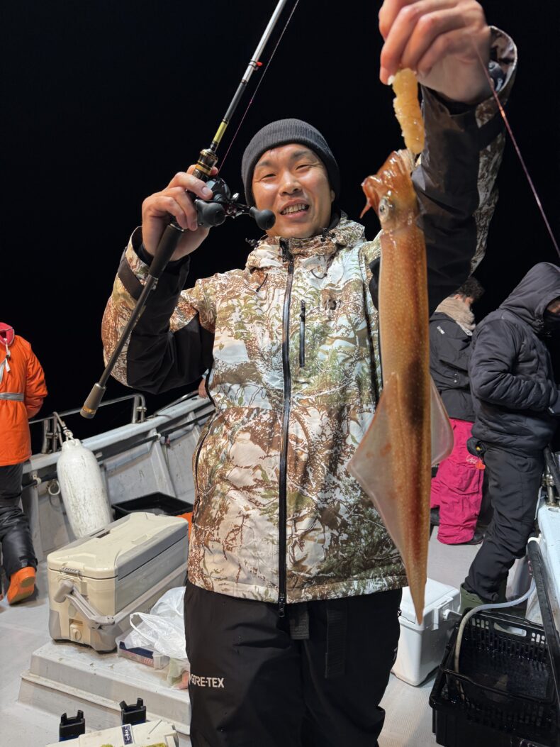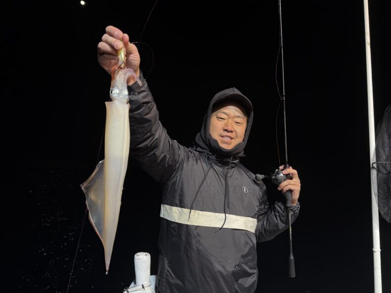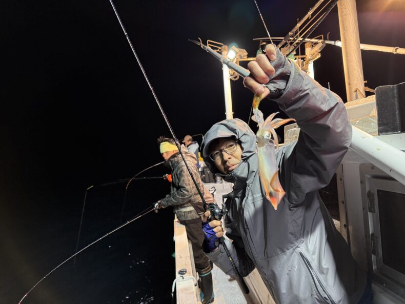 集魚灯を点けしばらくして反応がパラパラと出始めるとヤリイカからのスタート😮💨