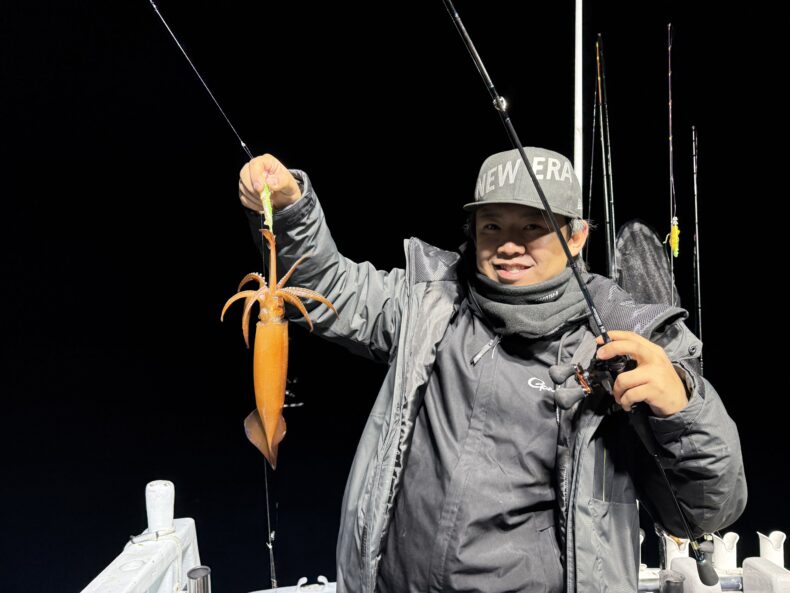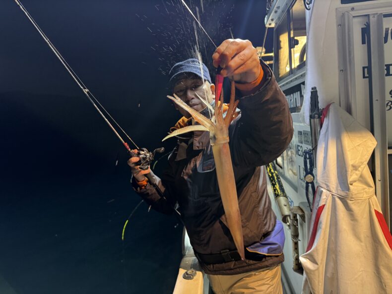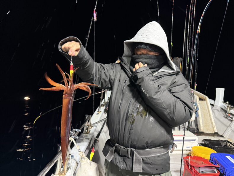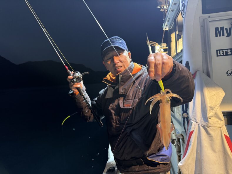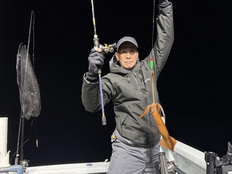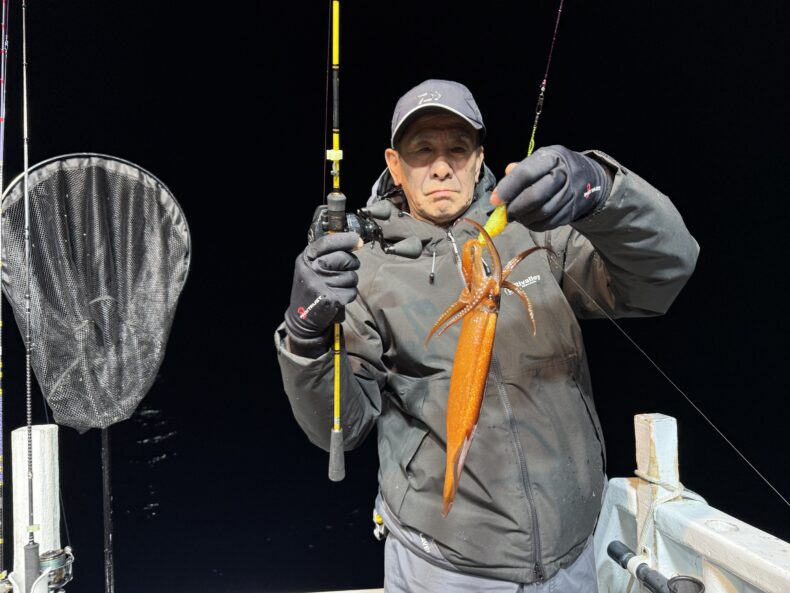 集魚灯を点けしばらくしてケンサキ&スルメがポツリ…ポツポツと当たり始めましたが後が続かず…
