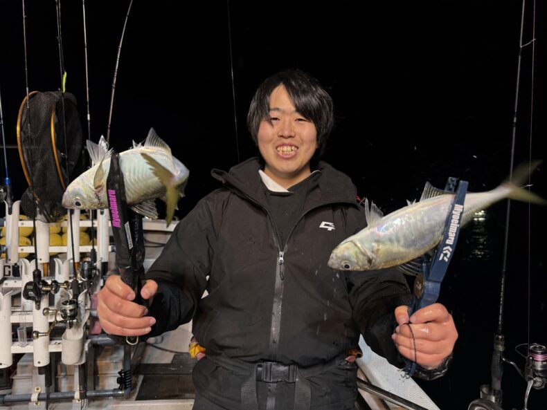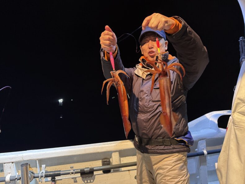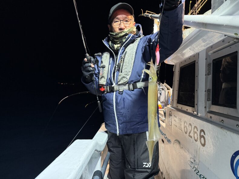 イカメタル本日はクレイジーオーシャンから仲さん、フィッシング遊鈴鹿店から田中くん参戦で乗り合いの皆様とイカメタル便で出船致しました❗️