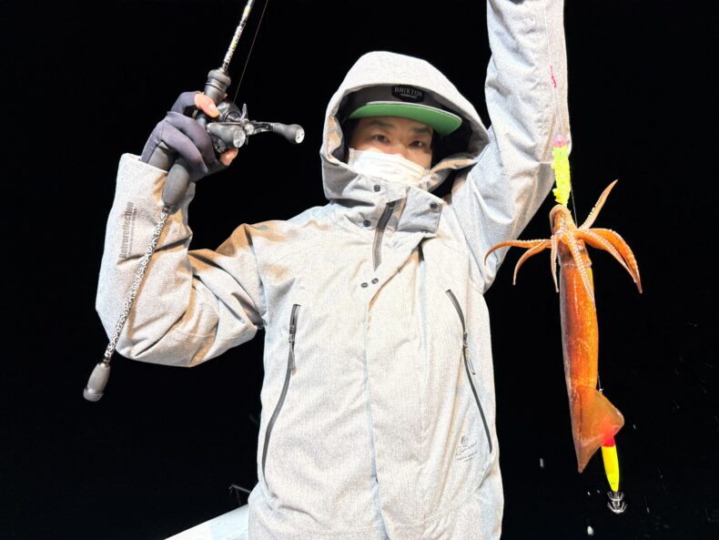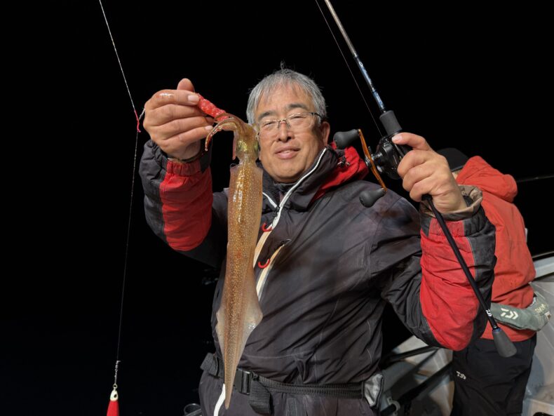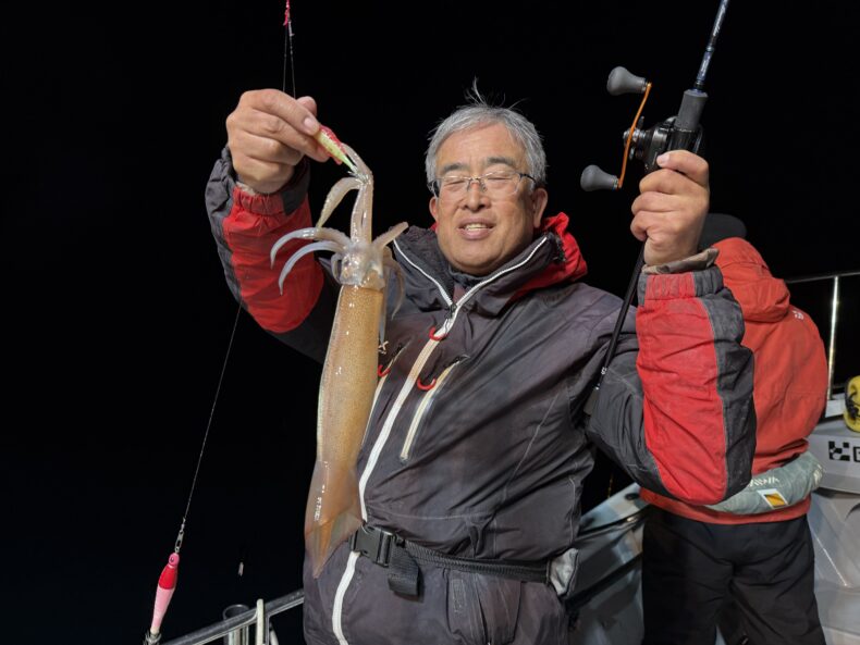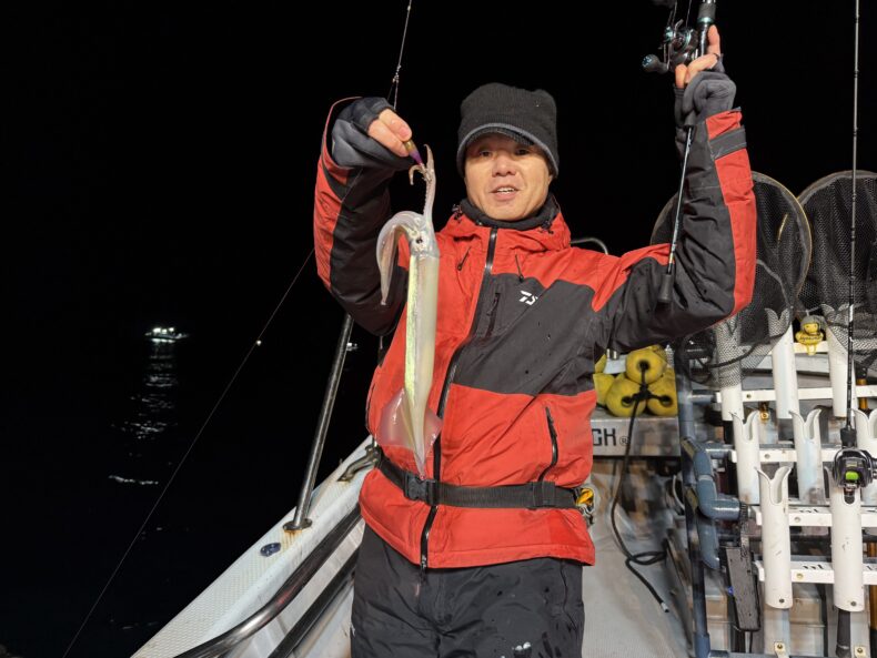 集魚灯を点けしばらくしても反応が入らず…ケンサキ&スルメがポツリ…ポツリで後が続かず…